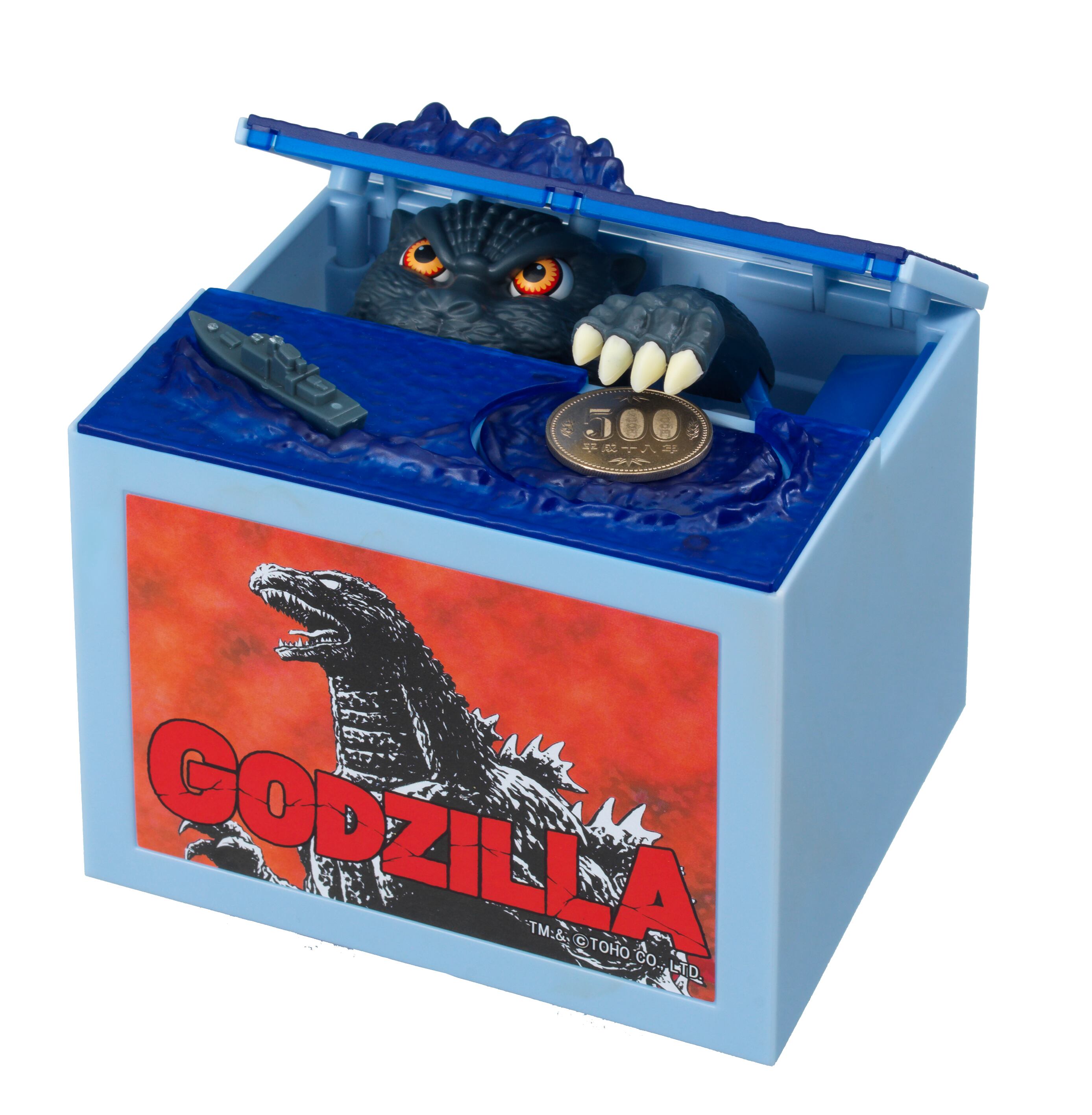 ・発光、BGM鳴動ギミック搭載で大迫力のゴジラ貯金箱です。